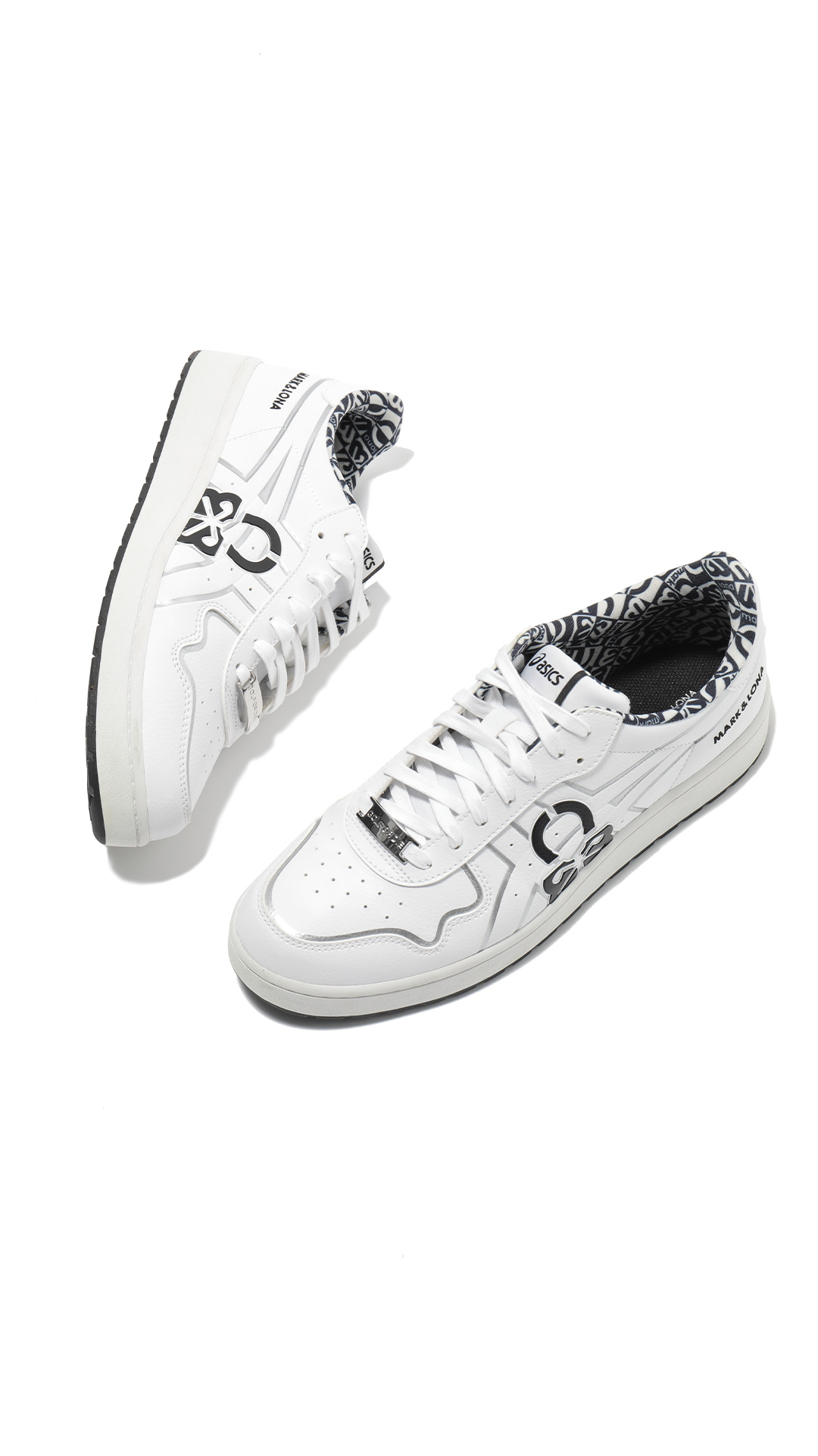 デザイン面では、象徴的な「アシックスストライプ」の上に、今季から展開する新たなアイコンとなる”エレメントスカル”を配置。シンプルなホワイトのボディにシルバーのトリムが控えめな光沢を添え、上質な存在感を放ちます。さらに、シューズの中敷きにもオリジナルの総柄プリントを施しており、細部に至るまでブランドの世界観を表現した贅沢な仕上がりとなっています。