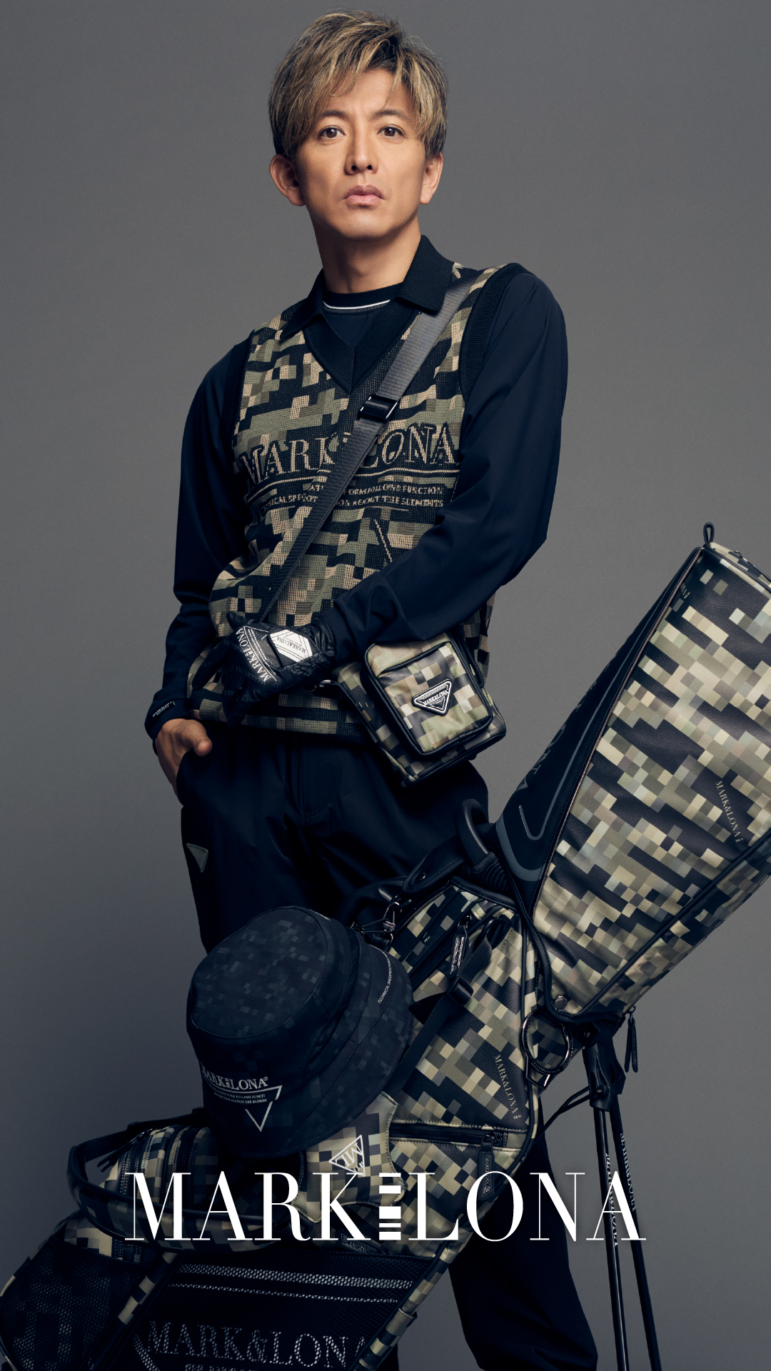アクセサリー類もデジタルカモフラージュ柄で統一。キャディバッグ(9型47インチ対応)は、フルセット収納可能ながらコンパクトなスタンド型。マグネット式ポケットやダブルショルダーを採用し、実用性とスタイルを両立しました。 また、UVカット・抗菌・速乾機能を備えたバケットハットや、ゴルフ小物やスマホ収納に最適な2WAY仕様のショルダーポーチなど、快適性を支えるアイテムが揃います。
