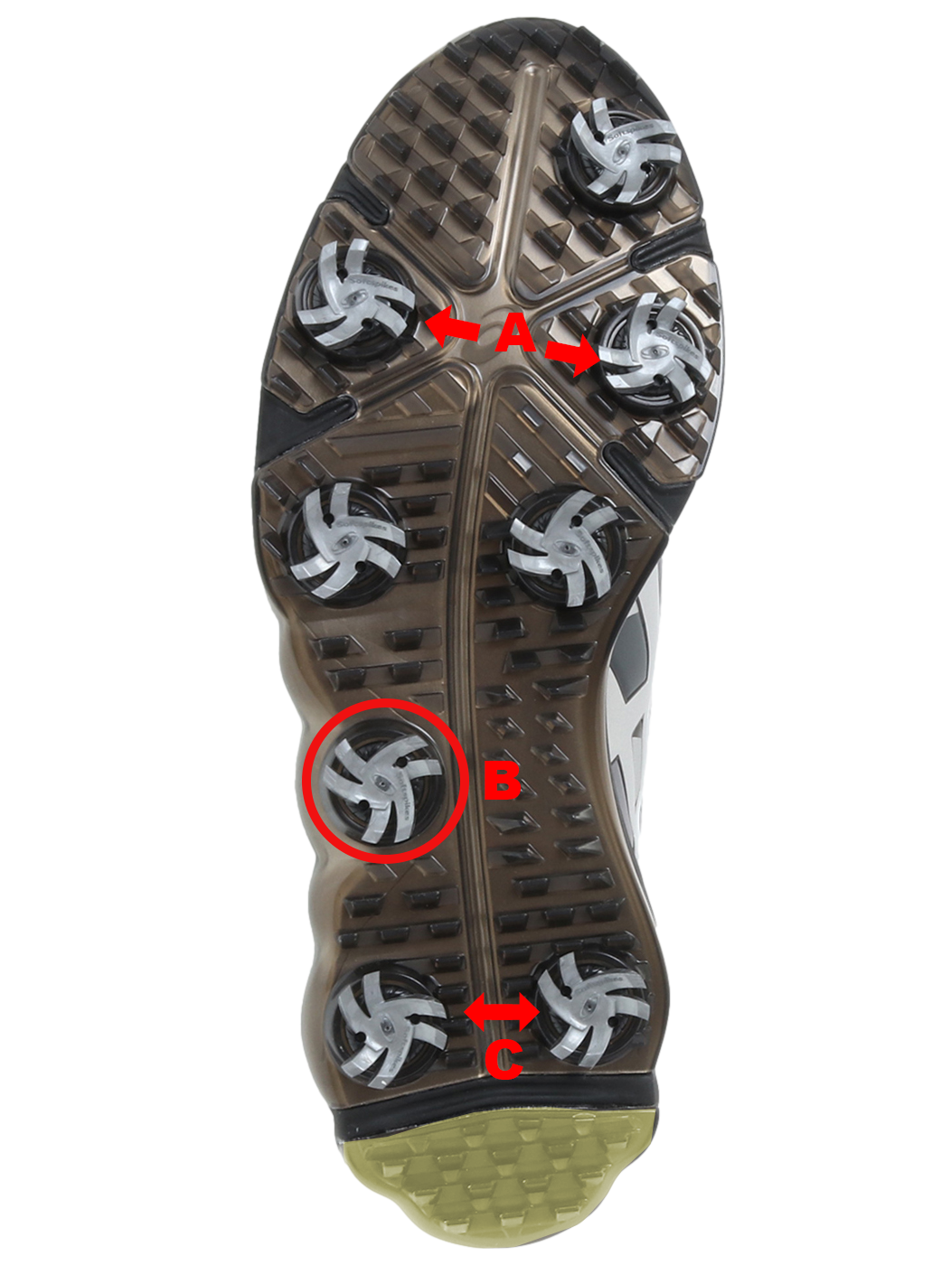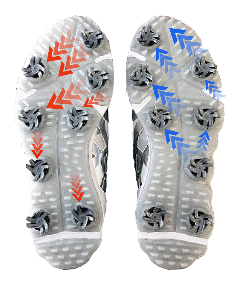 インパクト直前にソールに生じる力の向きに対しサブスタッドを垂直に配置。