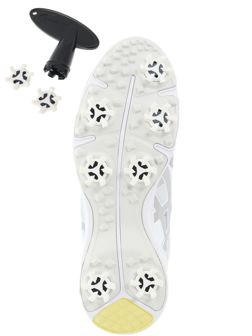 ミッドソール踵部に『GEL』を搭載。歩行時やスウィング時の衝撃を緩衝します