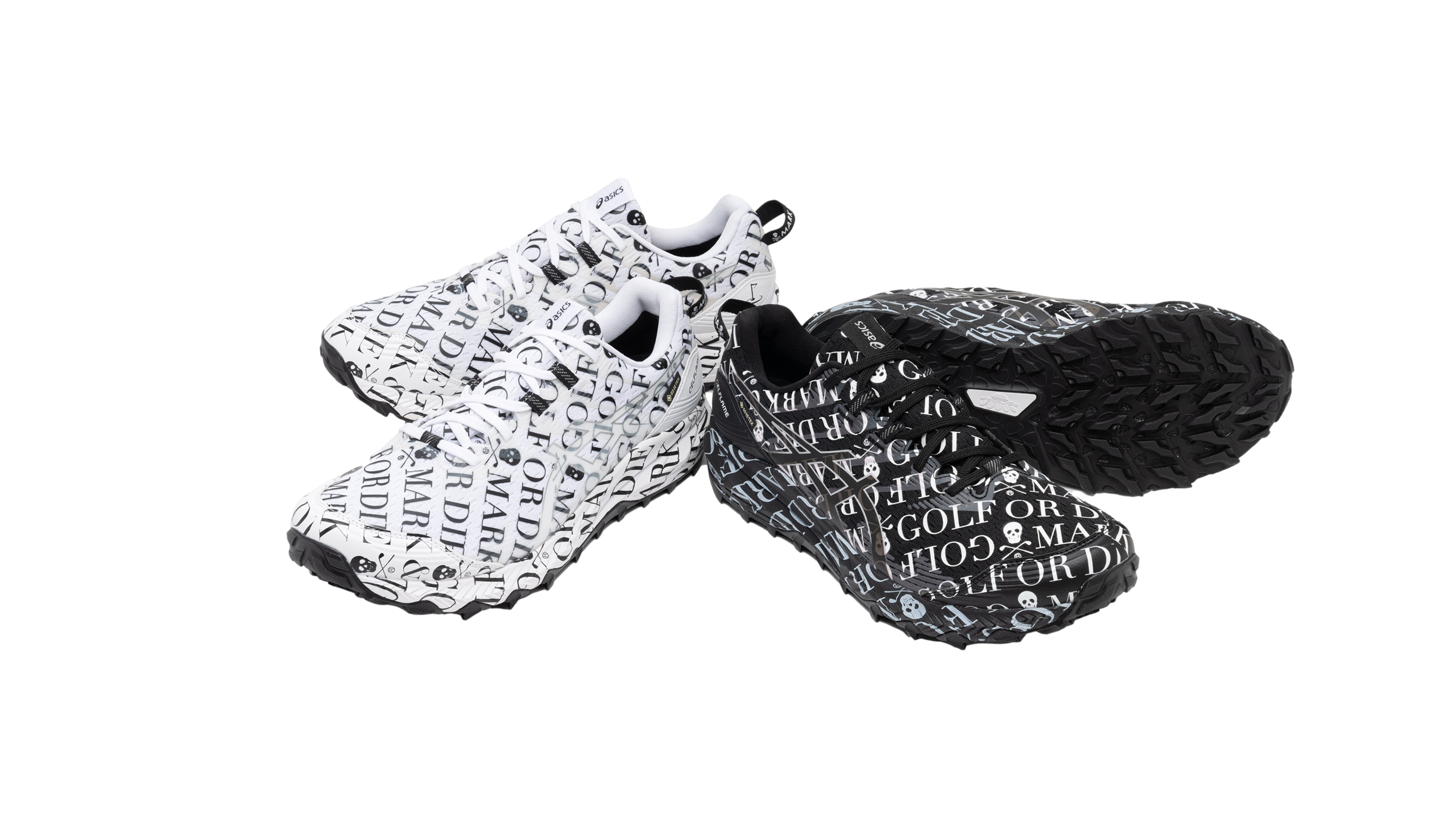 今回のコラボレーションシューズは、難しい地形や山道、気象条件に遭遇したときでも対応できるトレイルランニングシューズ「GEL-Trabuco 10 GTX」をベースにゴルフシューズとして生まれた世界初展開のスパイクレスシューズ「GELFLAME GTX(ゲルフレイム ジーティエックス)」。