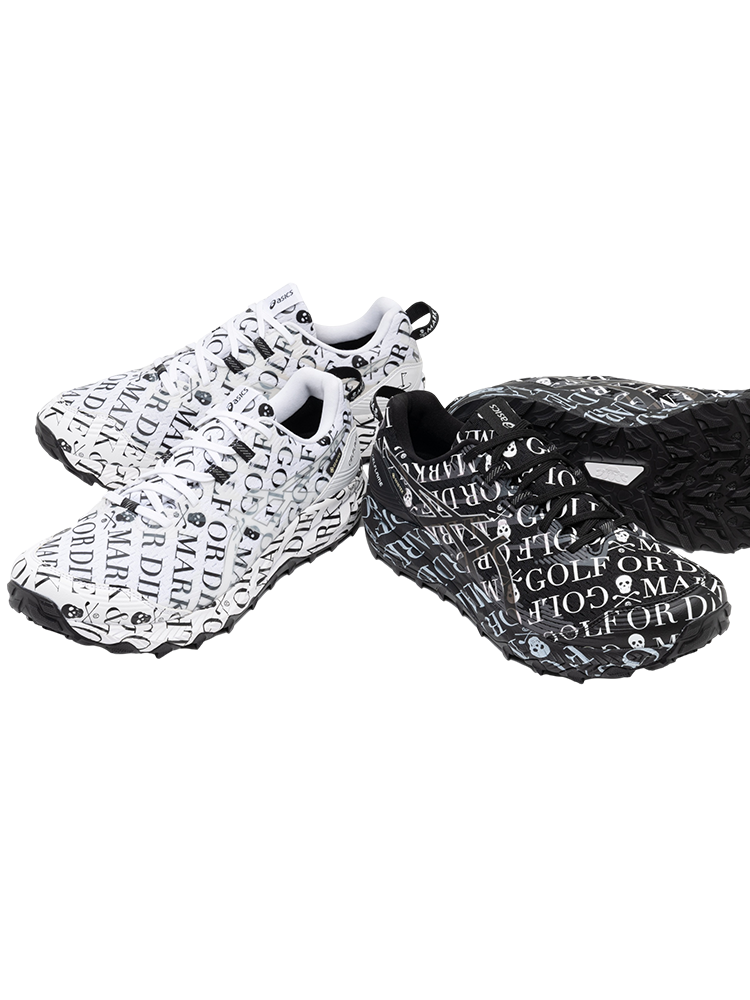 デザインは、MARK & LONAのアイコンであるアイアンスカルとブランドロゴのダイアゴナル柄を全面にあしらった大胆なデザインが特徴。ミッドソールにまで柄がプリントされており、非常にシャープでスタイリッシュなオリジナルパターンを採用しています。かかとの内側には、ワンポイントでピンフラッグをプリントしており遊び心溢れるモチーフ使いにも注目です。機能面では、アッパー部分に防水性・透湿性・防風性に優れた「GORE-TEXファブリクス」を採用しているのが大きな特徴。さらに、リサイクルポリエステル糸を採用しており地球環境に優しい素材となります。アッパーの裏側には補強材を部分的に配置し、スイング時の安定性と足入れの柔らかさを両立。ミッドソールのかかと部分には、衝撃緩衝機能GEL(ゲル)を内蔵しています。また、従来のゴルフシューズに比べて軽量なので持ち運びにも便利な一足です。