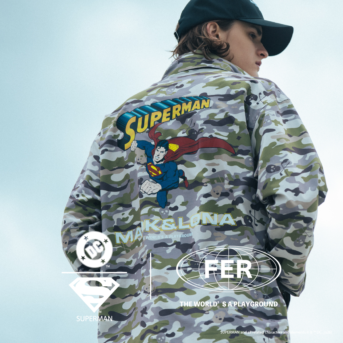 今回のコレクションでは、アメコミ史上最も歴史あるヒーローの原点「スーパーマン」との遊び心あふれるスペシャルコラボレーションが実現。世界中で愛され続けるアイコニックなキャラクターをFER独自の感性で表現した、特別なプロダクトが誕生しました。 至高の心地よさを追求したモールヤーン糸のセットアップは、ルームウェアとしても贅沢な肌触りを提供します。また、ロサンゼルスで丹念に加工を施し、バイカースタイルを彷彿させるヴィンテージ調に仕上げたスカルモチーフのカットソーや、ラウンドからタウンユースまでシームレスに活躍する高機能ナイロンセットアップなど、デザインと機能が融合したプロダクトが揃います。 シーズン後半には、夏の日差しに映えるアクティブなプロダクトも順次展開します。